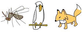オウムや鳥から感染するオウム病(クラミジアと言う細菌が原因)、キツネや犬から感染するエキノコックス症(エキノコックスと言う寄生虫(の卵)が原因)、ネコなどから感染するQ熱(キューねつ;リケッチアと言う細菌が原因)、ネズミから感染するペスト(ペスト菌という細菌が原因)など。